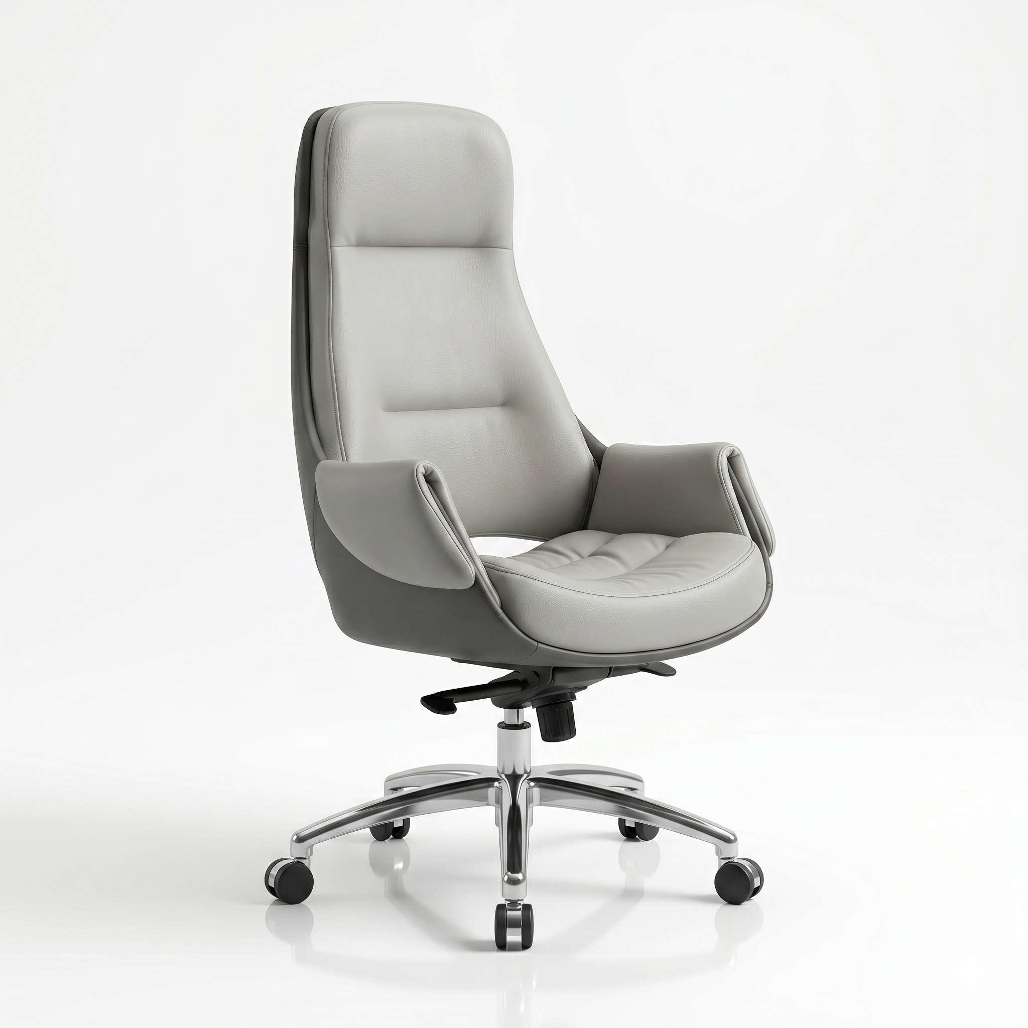 Elevate Your Workspace with THE Chair House Transform your daily workflow with the Velmora Elite Executive Office Chair, exclusively designed and manufactured by THE Chair House. Engineered for modern professionals who demand both luxury and heavy-duty performance, this chair features a striking dual-tone light and dark grey finish. The premium synthetic composite leather is spill-resistant, highly durable, and soft to the touch, providing a sophisticated aesthetic that instantly upgrades any corporate boardroom or home office setting.
