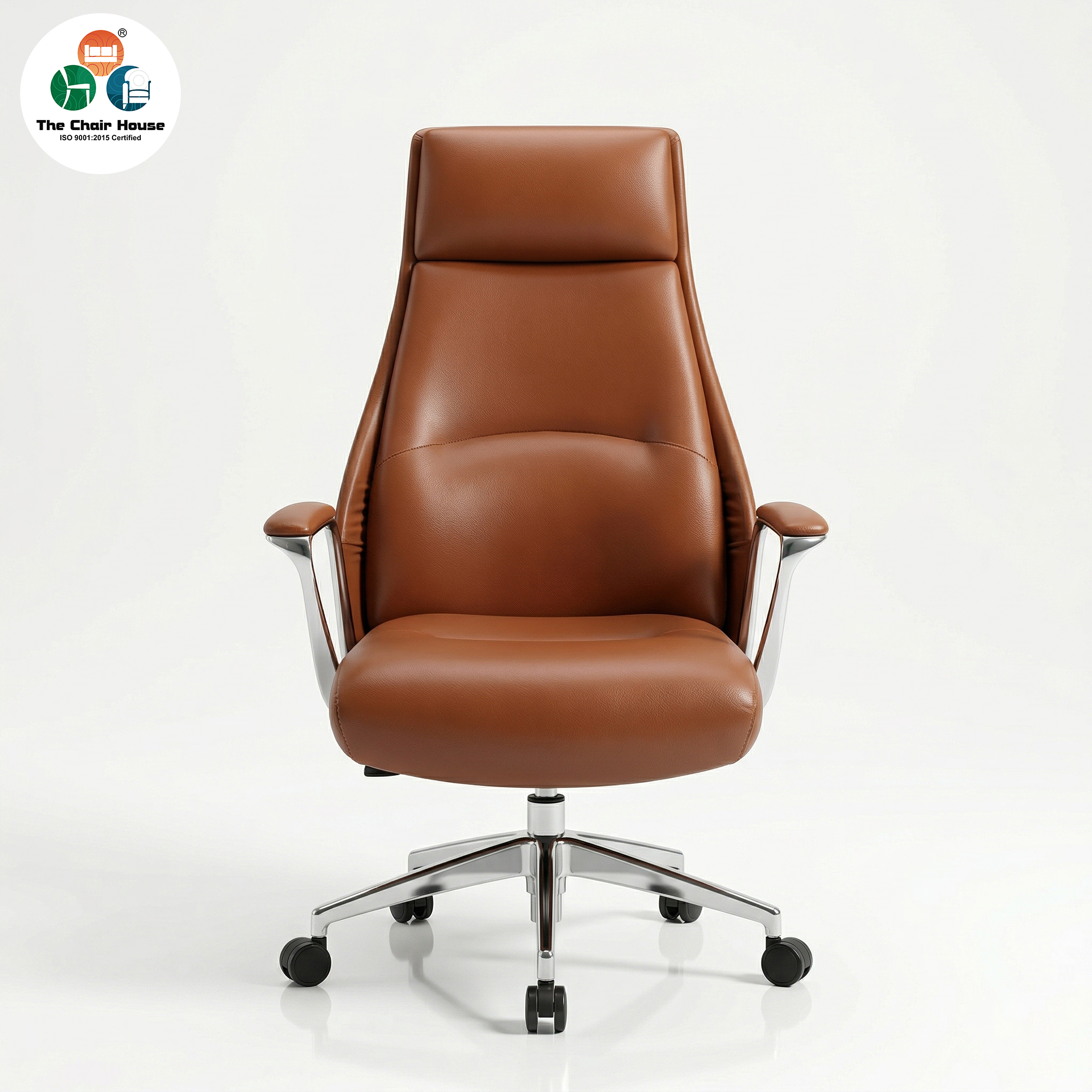 Crafted with a high-strength die-cast aluminium base and integrated padded armrests, the Veritas chair ensures long-lasting durability without compromising on style. The premium composite leather finish delivers a professional executive look that is easy to maintain—making it the ideal seating solution for corporate boardrooms, director cabins, and high-end home workspaces.